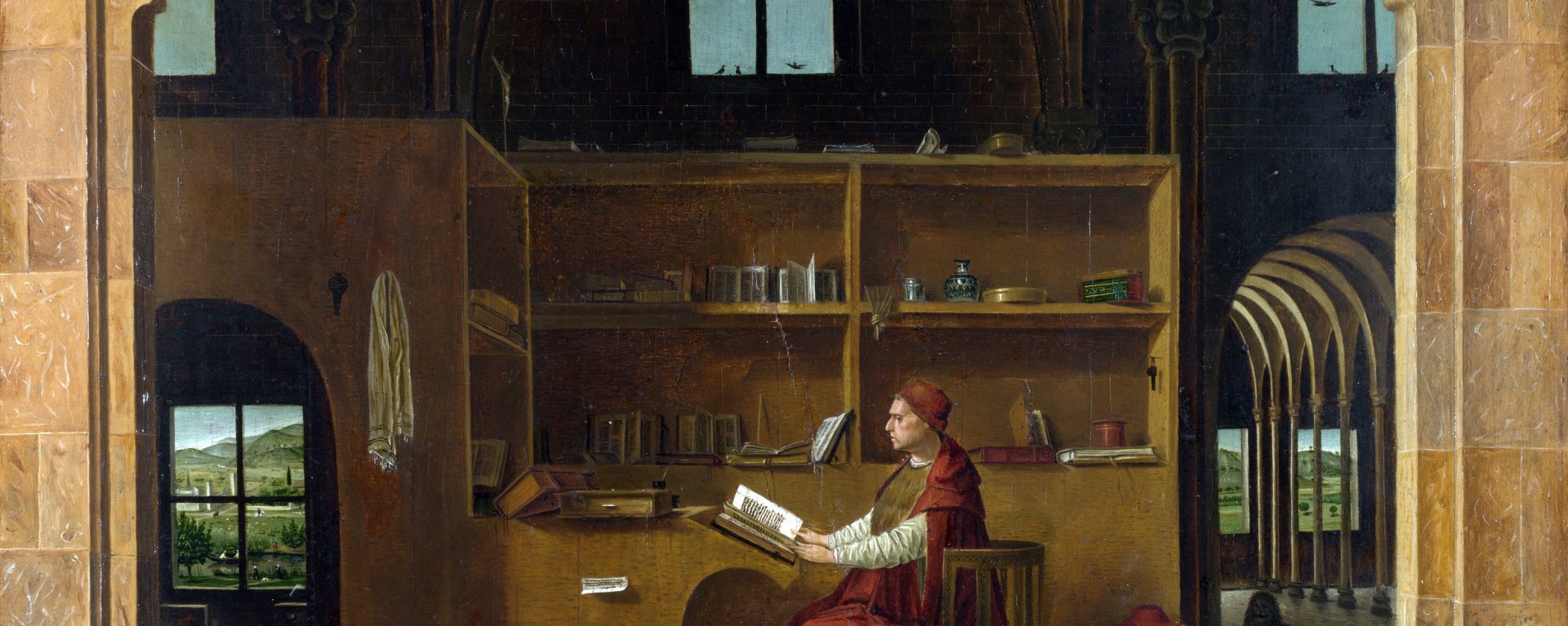 In Antonello da Messina’s painting, which has become a model for the figure of the solitary intellectual, St. Jerome reads. But, let’s ask ourselves, what is the very operation of reading if not a dialogue between author and reader? Don’t the very emblems (the partridge, the peacock, the geranium, to name but a few) that the artist places around the figure of the Saint indicate a real break-in of the philosopher’s solitude? And what do those symbols represent if not a vivifying inclusion in the ordinary intellectual work of excessive meanings (the Truth of Christ, the Church, divine omniscience)?