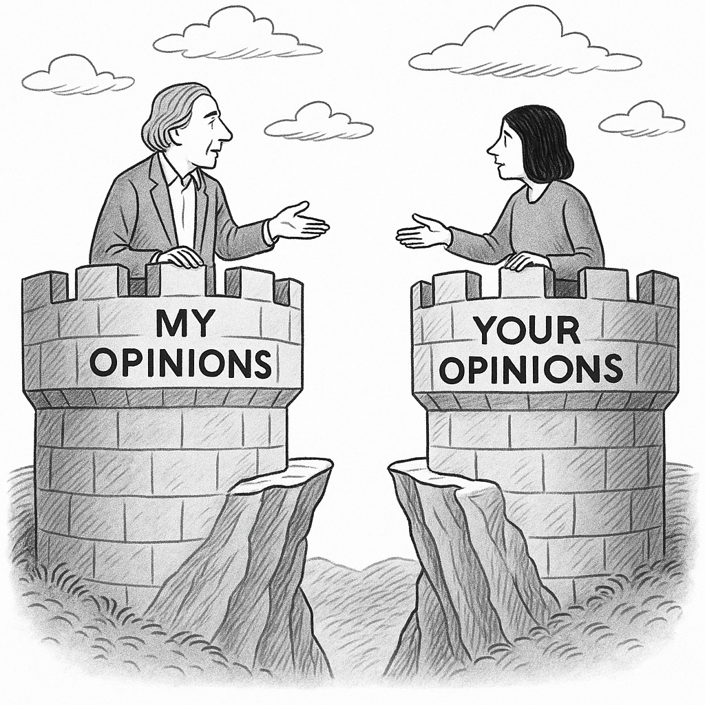 Every dialogue carries an almost automatic temptation: to turn into a line of defense. Our ideas become ramparts, our convictions fortresses, and our words seem like territories to guard, as if the other were an invader ready to dispossess us. This defensive posture is natural: we have been raised to believe that to exist we must possess something—a belief, a position, an identity[3]. But if dialogue is to become generative, if it is to make space for the new, we must learn to suspend—even temporarily—this claim to possession.