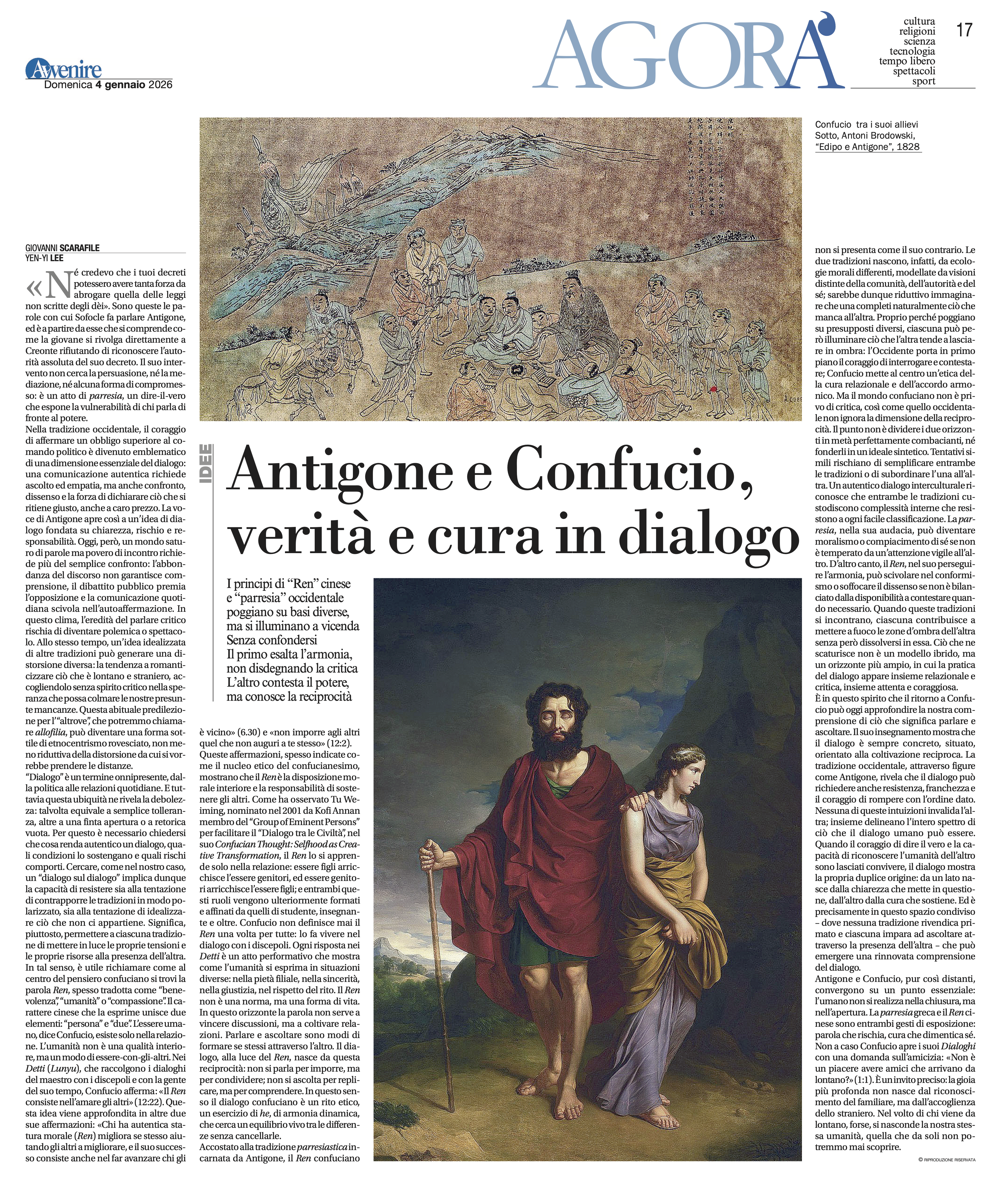 It is in this spirit that returning to Confucius today can deepen our understanding of what it means to speak and listen. His teaching shows that dialogue is always concrete, always situated, always oriented toward mutual cultivation. The Western tradition, through figures such as Antigone, reveals that dialogue may also require resistance, truth-telling, and the courage to break with a given order. Neither insight invalidates the other; together, they mark the full range of what human dialogue can be.