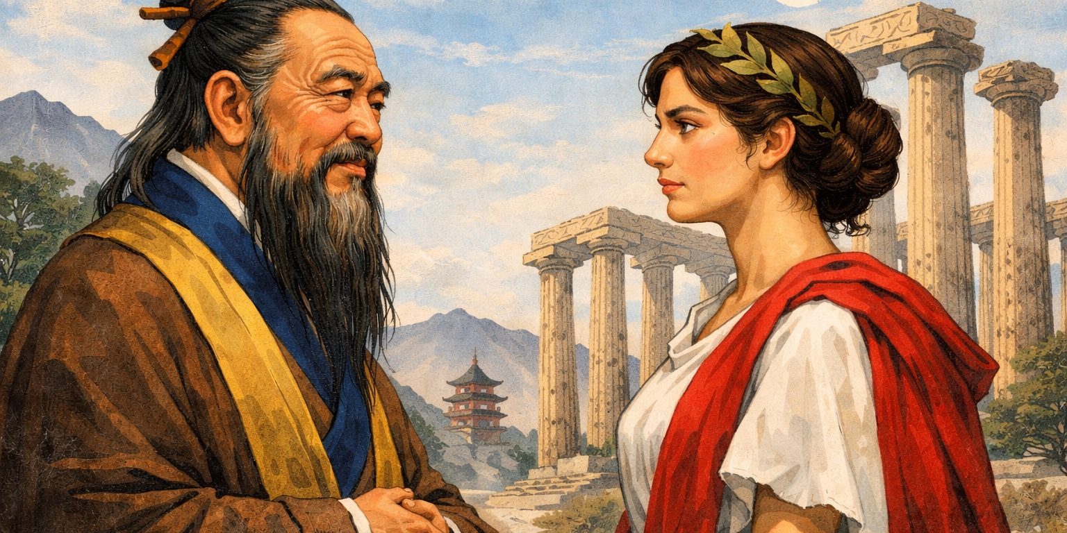 Placed beside the parrhesiastic tradition embodied by Antigone or Socrates, Confucian Ren does not stand as its opposite. The two traditions arise from different moral ecologies, shaped by distinct visions of community, authority, and the self, and it would be reductive to imagine that one naturally complements or completes the other. Yet it is precisely because they begin from different assumptions that each can illuminate what the other tends to leave in shadow: the West foregrounds the courage to question and contest; Confucius highlights the ethic of relational care and attunement. But the Confucian world is not without critique, nor is the Western world without concern for mutuality. The point is not to divide them into neatly matched halves, nor to fuse them in a synthetic ideal. Such moves risk simplifying both traditions or subordinating one to the other.
