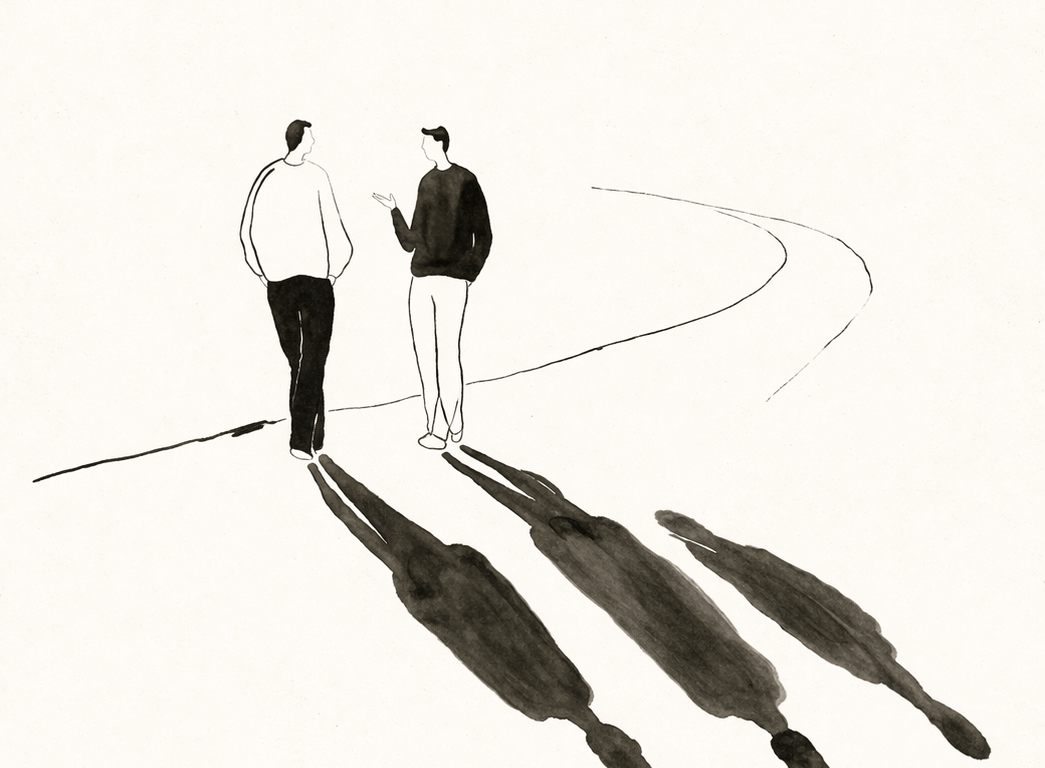 Two travelers walk along a road, talking. Their speech is not hesitant: it has the terrible compactness of something already closed. Each word confirms the previous one; each step presents itself as necessary—the meaning seems entirely available, leaving nothing but its unfolding. And yet, precisely here, within this fullness, something has already been lost. What governs them is not error, but a truth that has arrived too early, too solid to remain open to transformation. Words overflow, and in their abundance they saturate all space, making it impossible for anything other to occur. Their understanding has ceased to breathe. Meanwhile, beside them, someone walks unrecognized. There is no need to name the scene. What matters is to grasp its structure: not an episode among others, but the enduring form of a dynamic that reappears wherever meaning closes before the other has spoken.