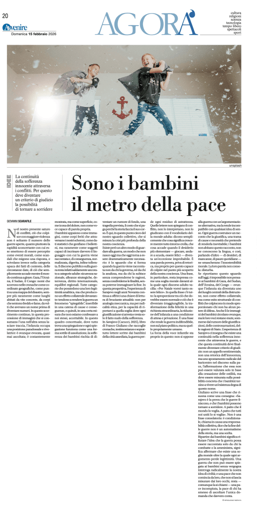 Quella frase l’ha scritta un bambino di Sarajevo durante l’assedio (e bisogna essere grati a Franco Giuliano per avercelo ricordato). Ma potrebbe scriverla oggi un bambino di Gaza, di Kharkiv, di Khartoum. La guerra cambia scenario, i bambini dicono sempre la stessa cosa — e noi continuiamo a non ascoltarli.