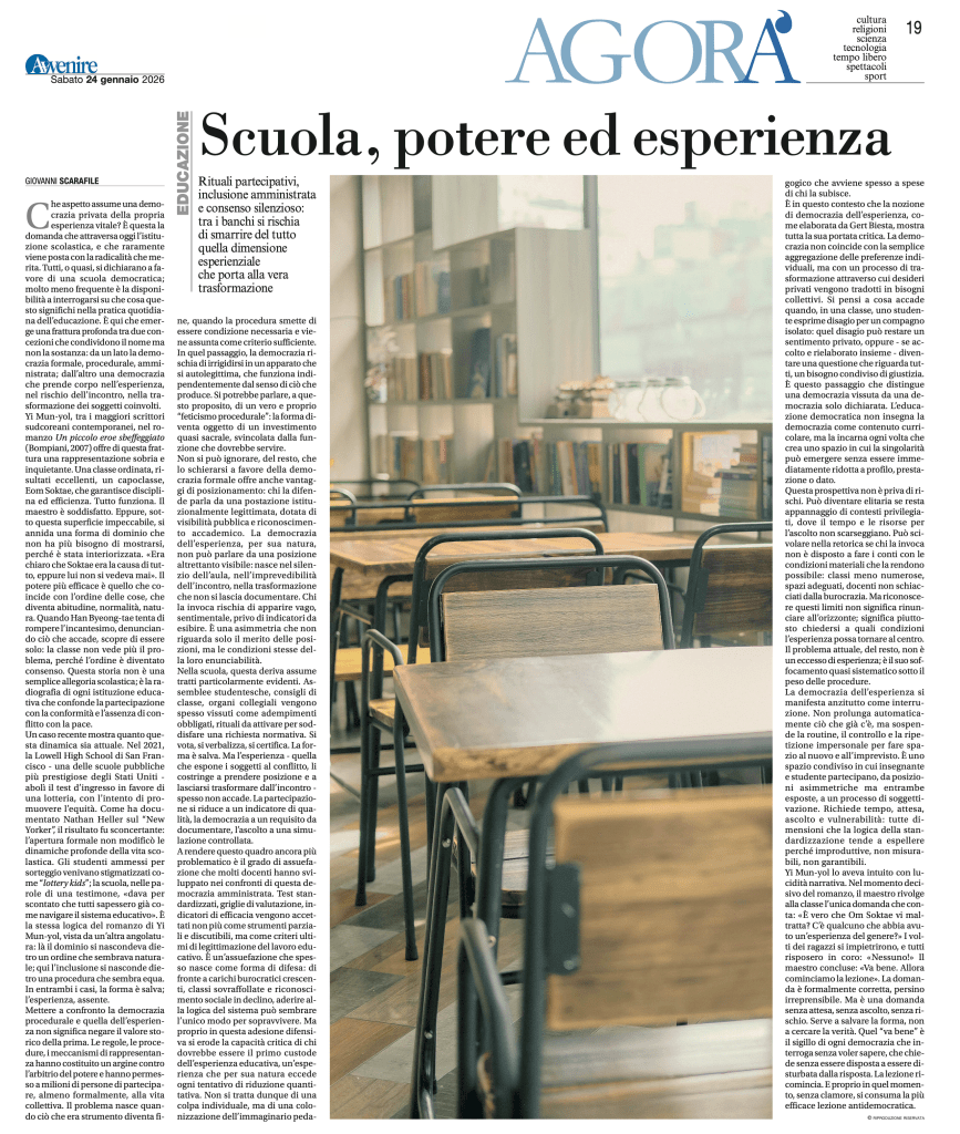 Che cosa rende sterili le nostre esistenze, nelle loro relazioni politiche e sociali? A mio avviso, l’illusione di poter restare impermeabili all’altro – la postura muniens – ci priva di incontri autentici e trasformativi. Solo un realismo della finitudine, che accetta i limiti e apre alla dialogetica, può restituire relazioni capaci di ospitalità e di durata, non fondate sul controllo ma sulla possibilità di condividere il tempo e lasciarsi cambiare. Su Avvenire del 23 agosto 2025.