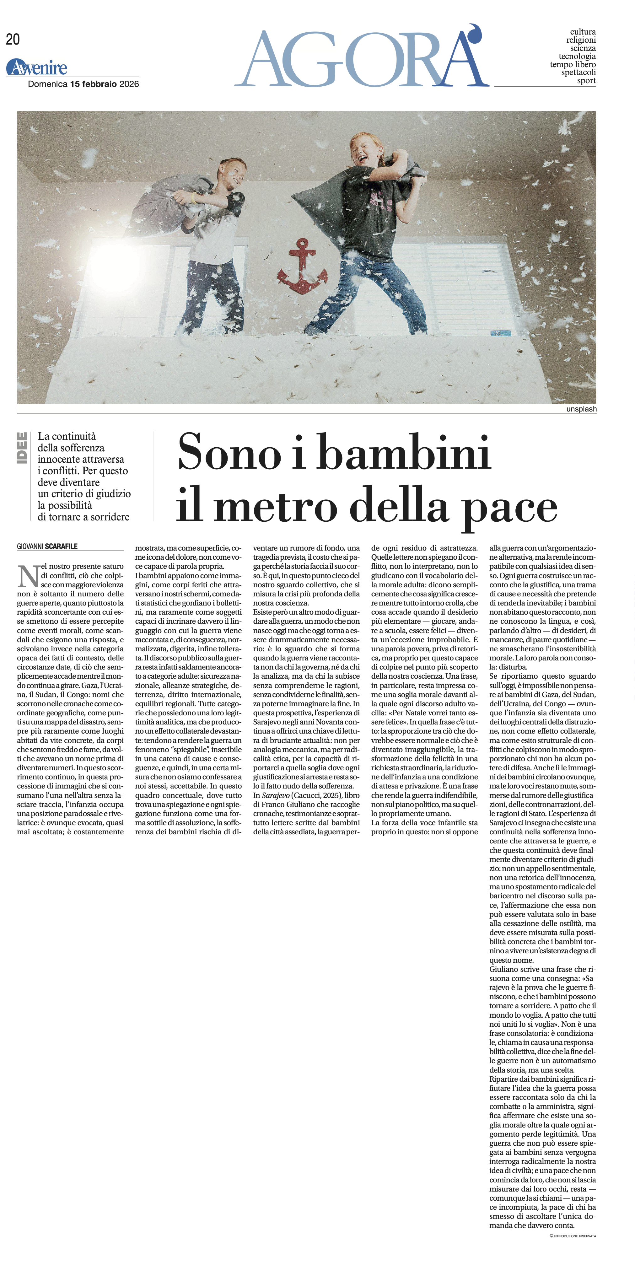 Quella frase l’ha scritta un bambino di Sarajevo durante l’assedio (e bisogna essere grati a Franco Giuliano per avercelo ricordato). Ma potrebbe scriverla oggi un bambino di Gaza, di Kharkiv, di Khartoum. La guerra cambia scenario, i bambini dicono sempre la stessa cosa — e noi continuiamo a non ascoltarli.